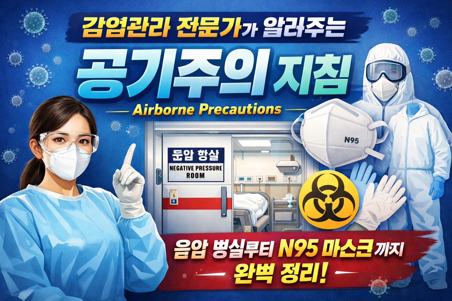 오늘은 의료기관 및 공공보건에서 가장 높은 단계의 방역 조치로 꼽히는 '공기주의(Airbone Precautions)'에 대해 감염관리 전문가의 시점에서 깊이 있게 정리해보려 합니다. 결핵, 홍역 등 공기 전파 감염병에 대한 정확한 이해는 의료진뿐만 아니라 일반인에게도 매우 중요한 지식입니다.